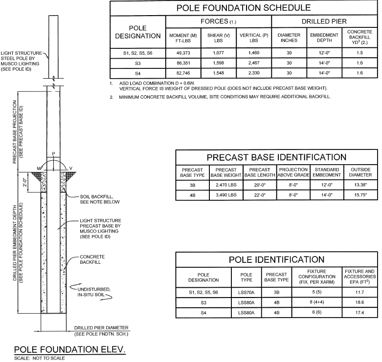 Once you have you have been provided with an approved or preliminary design by your MUSCO Sports Lighting Representative, provide The Caisson Company with Pole Foundation Schedule for a Complete Pricing proposal. A current Soils Report will allow us to give you a more accurate estimate of excavation costs, but is not necessary for us to provide you a Qualified Price.